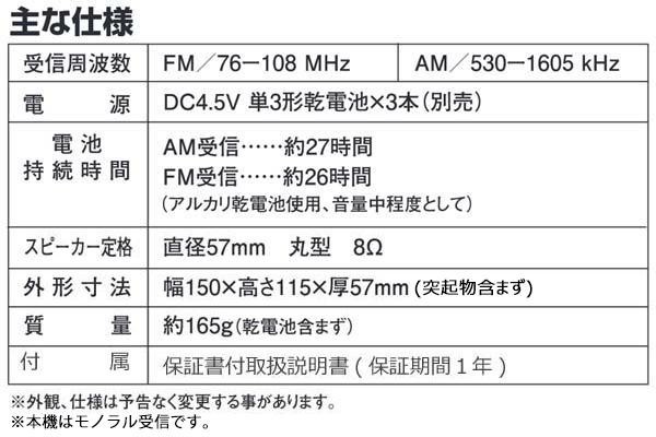 fk094igrjs持ち運びに便利な本体一体型ハンドルのラジオです サイズ 個装サイズ:19×20×7cm 重量 個装重量:250g 生産国 中国 安定感のある横置きフォルムのラジオ 持ち運びに便利な本体一体型ハンドルのラジオです