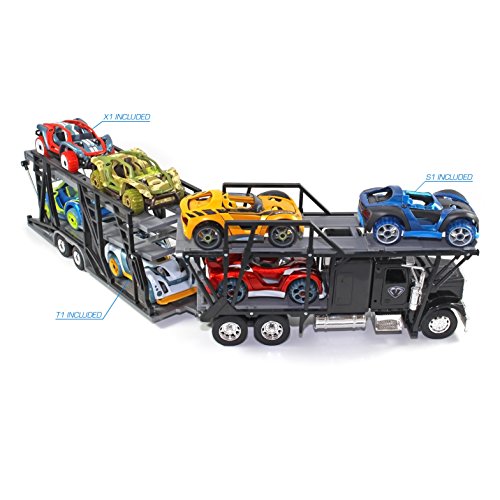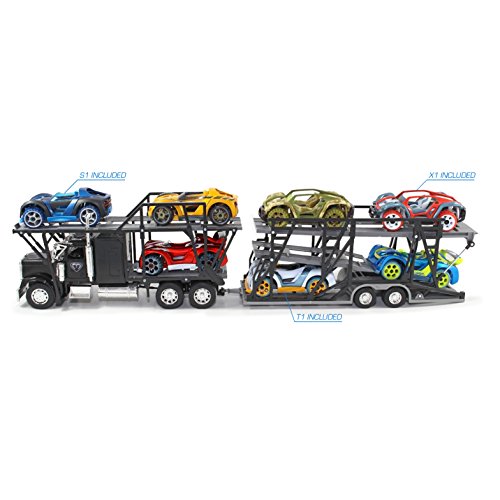 -. Title : Modarri Haul 'Em Car Transporter - Ultimate Transporter Fits 8 Toy Cars - Includes 3 Cars: Mix and Match For Thousands of Designs - Real Steering and Suspension - Educational Construction Toy For Kids
