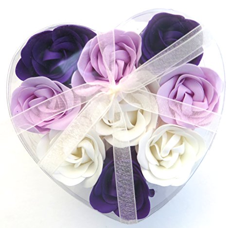 -. Title : Valentine Purple Rose Bath Bomb, Nine Colorful Charing Rose Flowers in a heart gift box. 20