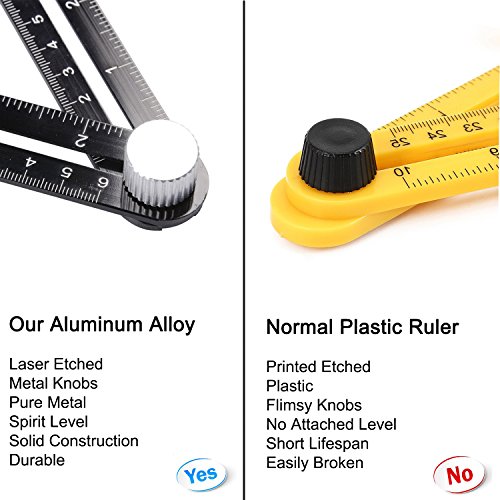 - DURABLE, COMPACT & LIGHTWEIGHT: Excellent portable tool. Aluminum Alloy makes the ruler durable for any job and industry. Your Tool folds for easy storage and utilizes a unique tightening mechanism for one-handed operation.
