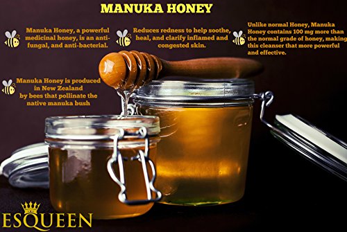 - MANUKA HONEY: The Manuka Honey, produced in New Zealand, works as a natural powerful antibacterial, anti-inflammatory reducing redness to help soothe, heal, and clarify inflamed and congested skin. Unlike normal Honey, Manuka Honey contains 100 mg more than the normal grade of honey, making this cleanser that more powerful and effective.