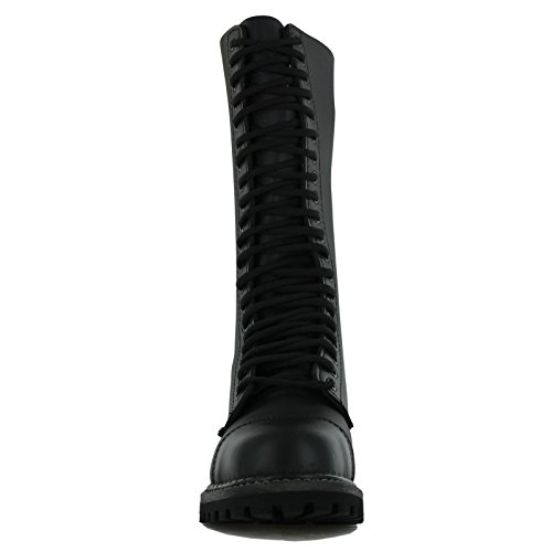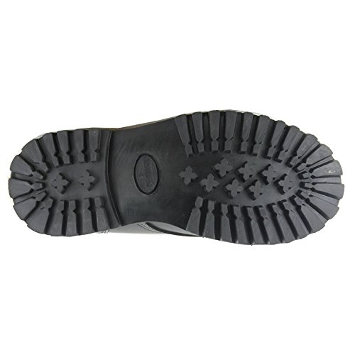 Studio : Grinders Publisher : Grinders Binding : Apparel Product Description An absolute classic from Grinders these King CS Derby 20 Eyelet Boots for men in black are made with smooth, tough premium leather upper and tongue to provide a stunning look.These high leg boots have a soft leather lining to make it a pleasure to put your foot in and a removable insole. The approximately 34cm shaft with 20 eyelet lace fastening military style boots can seem a bit intimidating at first but they are pretty easy to slip on and off after that.These combat style boots have a steel toe to give extra protection and a Goodyear welted finish which means the sole is sealed properly to make the boots durable. For comfort these mid-calf boots have the signature Comando Soles with high grip cog design. These boots are an all rounder combining high quality materials with a bit of protection so you can wear them pretty much anywhere. 0
