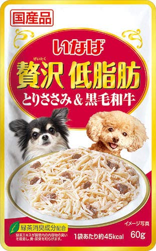 原材料:鶏肉(ささみ)、和牛、鶏脂、ビーフエキス、寒天、酵母エキス、タンパク加水分解物、でん粉、ミネラル類(Ca、Fe、Cu、Mn、Zn、I、K)、増粘多糖類、ビタミン類(A、D3、E、B1、葉酸、B12、コリン)、増粘剤(加工でん粉)、紅麹色素、緑茶エキス