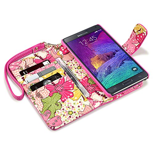 - Title : Samsung Galaxy Note 4 Case, Terrapin [Pink] [Lily Floral Interior] Textured PU Leather Wallet Case with Card Slots Cash Compartment and Detachable Wrist Strap for Samsung Galaxy Note 4 - Pink