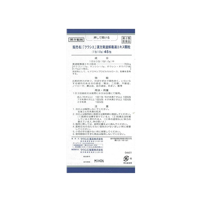 원본상품명: 【第2類品】「クラシエ」漢方連解毒湯エキス顆粒 45包