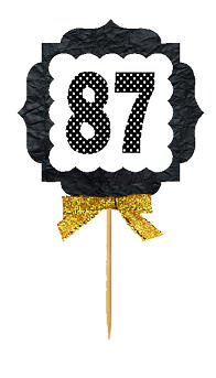 87th Birthday / Anniversary Gold Ribbon Hand Crafted Novelty Cupcake Decoration Toppers / Picks -12ct