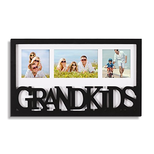 Deco De Ville 3 Opening "Grandkids" Theme Decorative Puzzle Collage Picture Photo Frame, Wall Hanging, Black