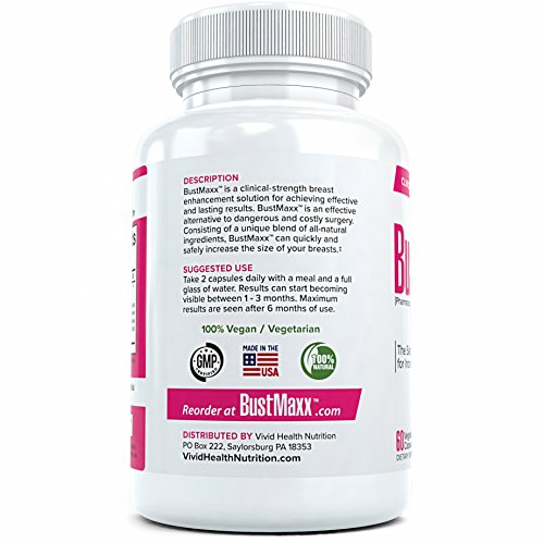 BustMaxx has been the proven solution for immediate and long term results for hundreds of thousands of women. Unfortunately many breast enhancement supplements currently available use low quality or unsafe ingredients and cheap fillers to cut costs. BustMaxx however, consists of a revolutionary highly concentrated breast augmentation formula, utilizing the highest grade ingredients, produced in GMP certified, FDA approved facilities. BustMaxx's unique formula is a proprietary blend of mast genic herbs and exotic plant extracts that has been shown to increase a woman's breast size by stimulating new cell growth in the mammary glands. Why waste a fortune on expensive and dangerous surgery for an unnatural and fake looking appearance when you can have real thing for a fraction of the cost.Feature