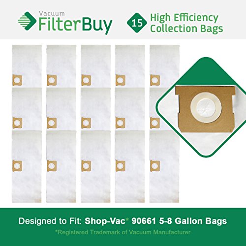 15 - Shop-Vac 90661 906-61 9066100 Bags. Designed by FilterBuy to replace Shop Vac 5-8 Gallon 90661 Dust Collection Vacuum Bags