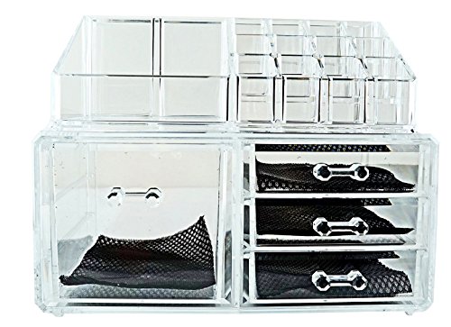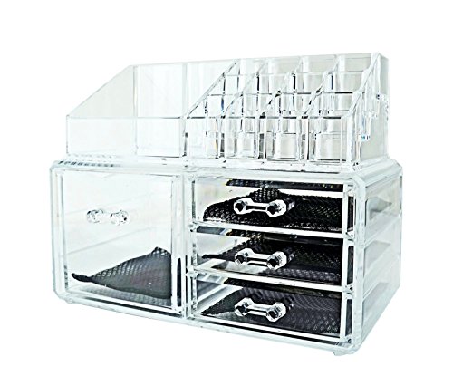 -. Brand : 6goodeals -. Color : clear -. Feature : Measurements: 7.5"x 9.5" x 6" Color: Clear Material: Acrylic / This acrylic makeup stand contains 3 slots with 1" inch opening and a slot with 2.75" inches opening. drawers / For the top section, it come with the makeup stand measures a 5" inches wide. Slots having different size opening and are 1" to 3" (slots vary) inches deep. / Perfect for anyone that wants to save more space and be more organized. / One purchase comes with a lipstick box we pick RANDOMLY. -. MPN : B01GVZW6PE -. PackageQuantity : 2 -. PartNumber : B01GVZW6PE -. ProductGroup : Home -. ProductTypeName : HOME_BED_AND_BATH -. Title : 6goodeals, 4 Drawers Acrylic Cosmetic Make Up Organizer & Jewelry Storage 2 Pieces Display Set FREE Lipstick Case~ USA SELLER FAST SHIPPING!