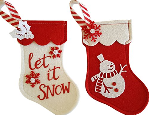 Christmas Gift Card Holders Felt Mini Stockings - Set of 6 (Snowman + Let It Snow)