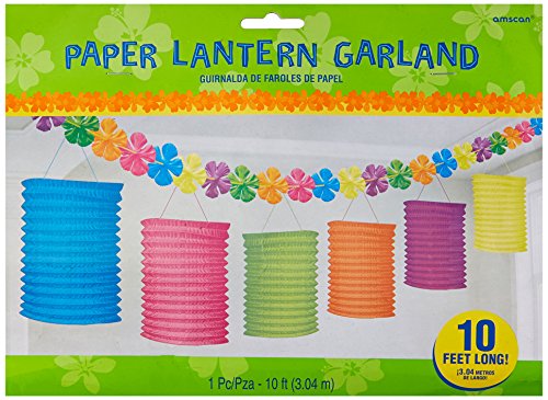 Hawaiian Summer Luau Beach Party Tiki Lounge Flowers and Lantern Garland Decoration, Paper, 10 Feet
