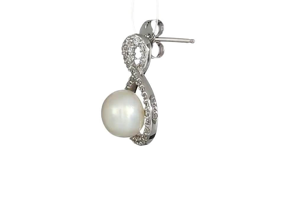 Platinum Plated Sterling Silver Cubic Zirconia Freshwater Cultured Pearl Dangle Earrings