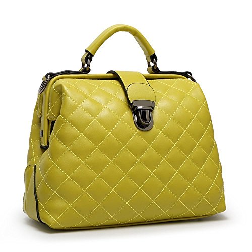 -. Title : Mn&Sue Designer Diamond Quilted Pattern Leather Top Handle Lady Handbag Shoulder Satchel Bag Doctor Purse