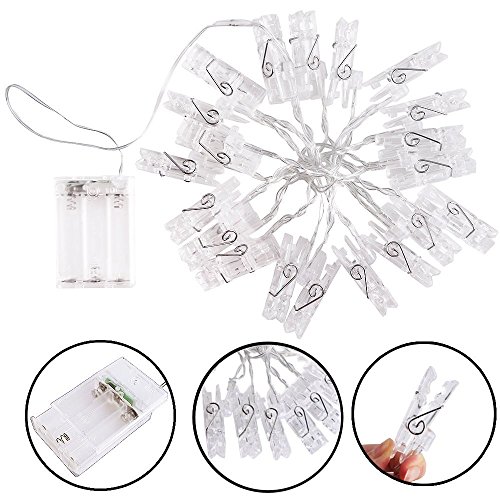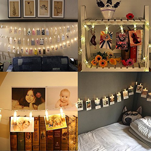 ★ Unique Design: Total length is 7.2 feet. 20 clips are spaced at 4 inches/10 cm apart,each clip contains an LED light, enough space for most Cards and photos. The length of the cord from the battery box to the first clip is 16 inches/40 cm.