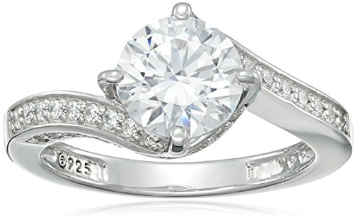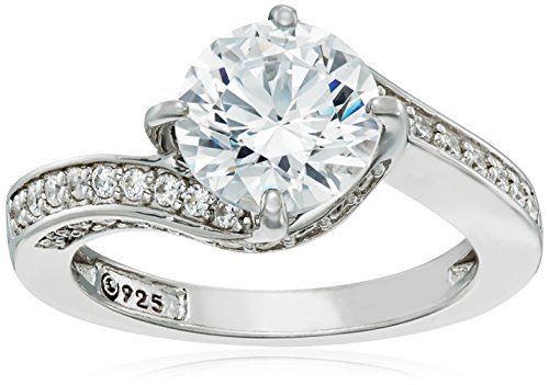 -. Title : Platinum-Plated Sterling Silver Swarovski Zirconia Round Center Stone Bypass Ring