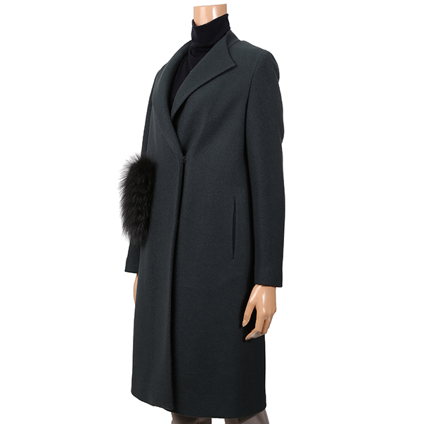 모100%에 가볍고 따뜻하며 밍크 악세사리로 포인트를 준 롱코트