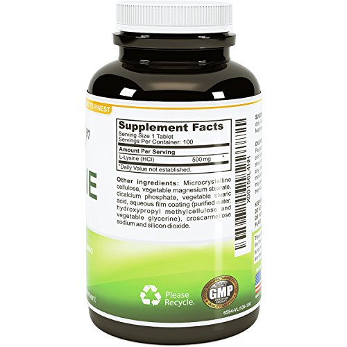 -. Title : Pure L-LYSINE 500mg - 100 Tablets - Natural Essential Amino Acid Supplement - Boost Immunity and Prevent Cold Sores - L-lysine Helps Collagen Formation for Healthy Skin + Hair & Bones