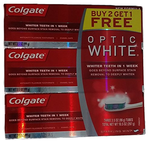 Colgate Optic White Toothpaste, Sparkling Mint, 3.5 Ounce (Pack of 3)
