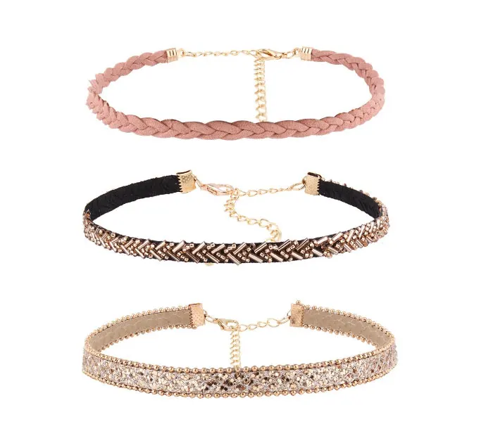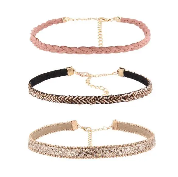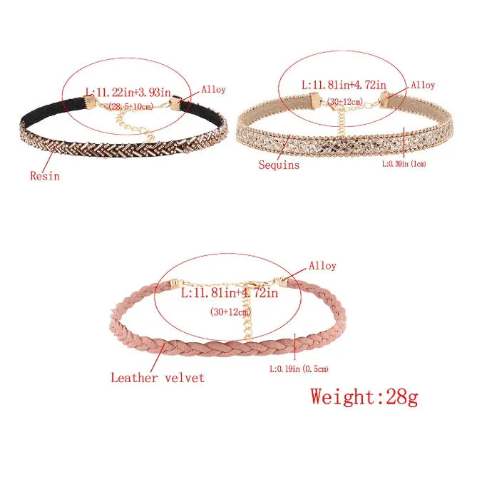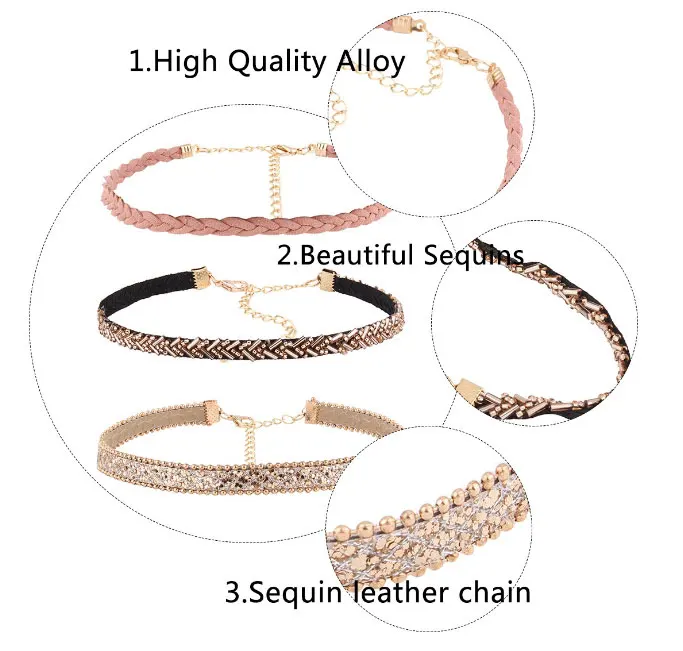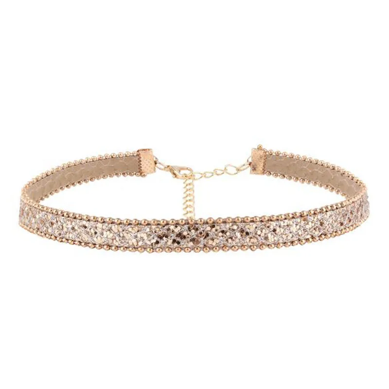 Necklace Style:Cute Sequin Leather Choker Necklace New Velvet Rope Choker Collar