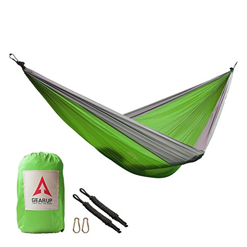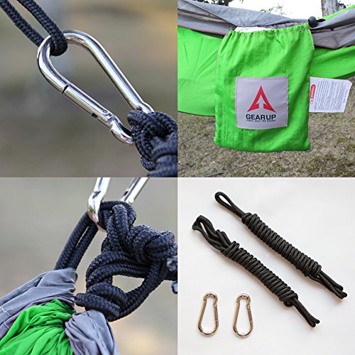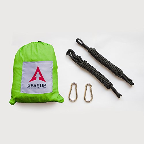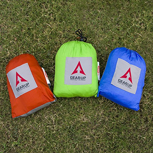 HIGH QUALITY & DURABLE. GEARUP Single Camping Hammock made of breathable 100% 210T nylon fabric, triple stitching, safely support a maximum capacity of 500LBS.