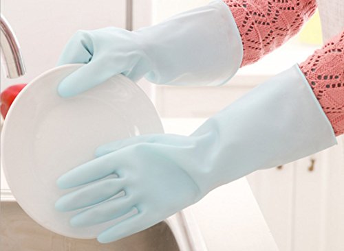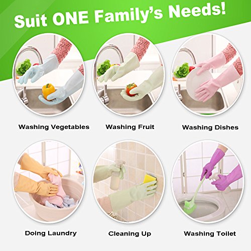 Set of 5 Pairs - SPADORIVE Reusable Macaron Color Latex Gloves Household Antibacterial Latex Gloves for Kitchen Dish Washing Laundry Cleaning...