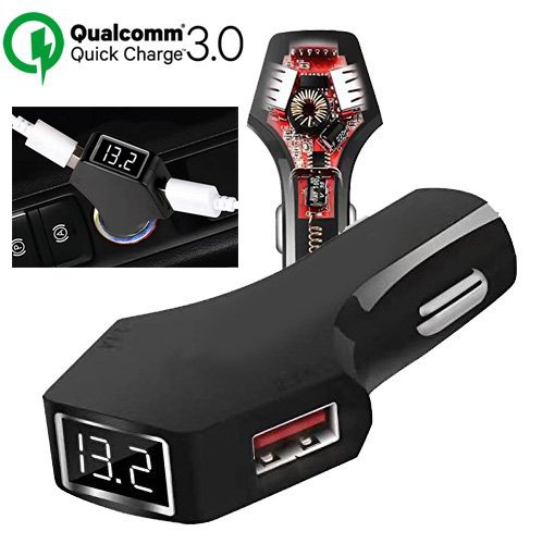 LED Voltage Monitoring Display 4.2A Dual USB Car Charger with Quick Charge 3.0 for Apple iPhone 7/6/6 Plus/5s/5c/5/4s/4, Apple iPad 4/3/2/Mini/Air/2, Apple iPod, Samsung Galaxy S6/S5/S4/S3