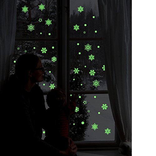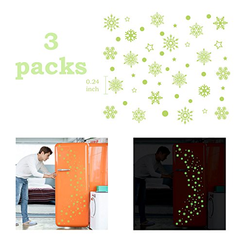Glow Snowflakes in the dark, Window Clings Christmas Stickers (3 packs) - Xmas/Holiday/Winter by Big Over, Beautiful Wall Decals with Dots and Moon for Starry Sky (Stars and Snows)