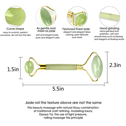 - Product Details:Size :Length:5.5in,Roller:Big:2.3 in,Small:1.5in;Color:jade is natural and different ,color maybe different from pictures. Package Included: 2* Massager.100% SATISFACTION & MONEY BACK GUARANTEE:60 days refund and resend guarantee,Jade roller is Fragile products,If broken during shipping ,please feel free to contact with us ,we will Resend you Free.