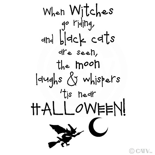 When Witches Go Riding and Black Cats Are Seen, the Moon Laughs and Whispers 'Tis Near Halloween Wall Sayings Vinyl Lettering Decal Sticker (12.5"W x 19"H, Black)