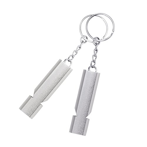JEANSWSB High Frequency Emergency Whistle, Double Tubes Aluminum Alloy Whistle with Keychain Survival Whistle Outdoor Needs Camping Hiking
