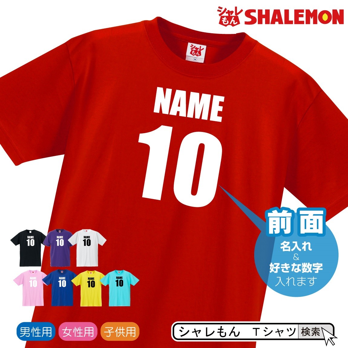 誕生日プレゼントに!1~99までの数字とお好きなアルファベット10文字までをオリジナルプリントします! 小さなお子様のお誕生日はもちろんのこと、成人のお祝いや三十路、四十路、五十路や還暦などにも喜ばれる名入れtシャツです! しっかりとした生地に耐久性の良いプリントをしております。 tシャツの本体は8色からおえらびいただけます。 ■ご注文時にご記入いただいた「名入れ希望文字」の、ご注文後の文字変更はできません。