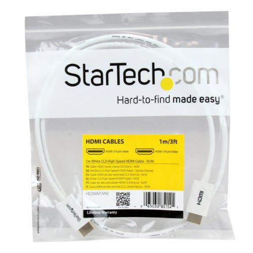StarTech.com 1m 3 ft White CL3 In-wall High Speed HDMI Cable - Ultra HD 4k x 2k HDMI Cable - HDMI to HDMI M/M - Audio/Video, Gold-Plated