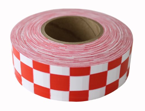 Presco CKWR-658 300' Length x 1-3/16" Width, PVC Film, Matte White and Red Chekerboard Patterned Roll Flagging (Pack of 144)