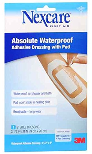 -. Title : Nexcare(TM) Absolute Waterproof Adhesive Dressing with Pad, 3 1/2 in x 8 in Pack of 2