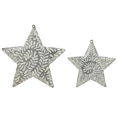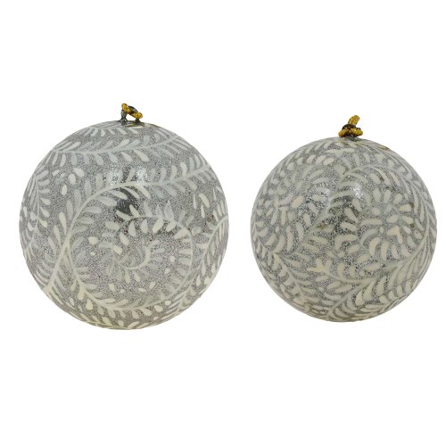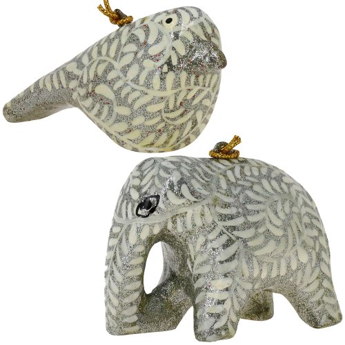 - Feature : Produced by hand in Kashmir, India / Set of 11 decorations for the Party / Hand-painted silver with white vine detailing / Loops at the top are ready for your hanging hook / Each ornament is between 2 and 8 inches in size