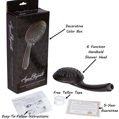 6 Function Handheld Shower Head - Amazing High Pressure, Adjustable Hand Held Showerhead - Indoor And Outdoor Modern Bath Spa Fixture - Aqua Elegante - Oil-Rubbed Bronze