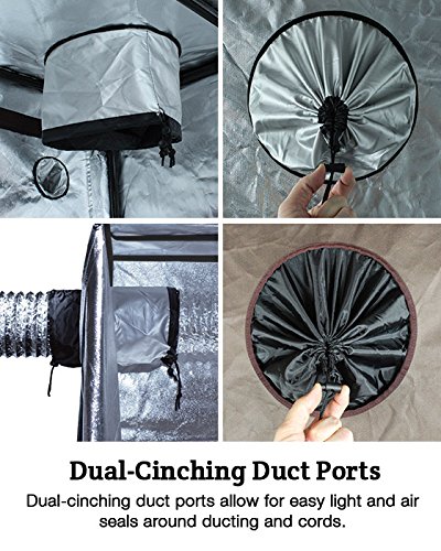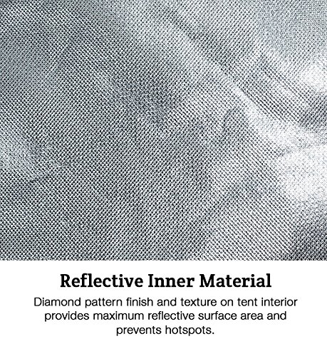 -. Feature : Set-Up Dimensions (LxWxH) - 59" x 59" x 84.5" / Thick 600D Thread Count Density / 95% Reflective Diamond Texture Mylar Inside / Strong 3/4" Black Powder Coated Steel Poles / 100% Light-Proof