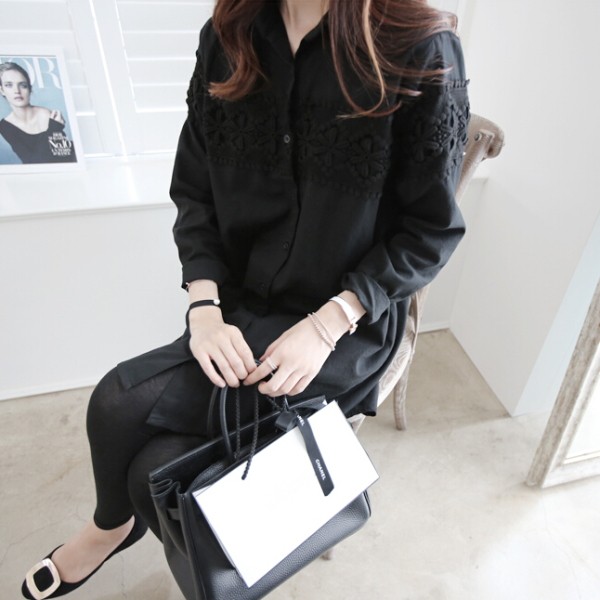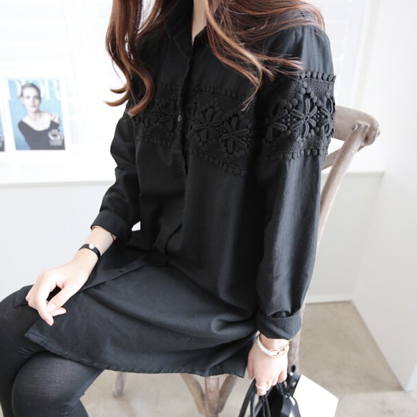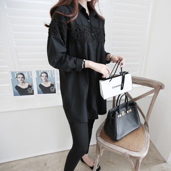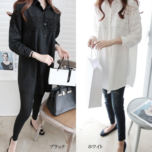 | 商品説明 | 花柄レースモチーフ Aラインチュニック ロングシャツブラウス♪ スキニーと相性の良い丈感の大人可愛いチュニックブラウスです。 ゆったりしたAラインシルエットでさりげなく体型カバーも♪ |