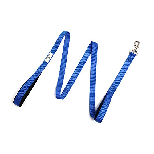 This 6ft long leash has two padded handles, one padded handle on the end (6ft long) and the another 1ft on the clip. Made of extra tough nylon. Keeping your dog safe at all times