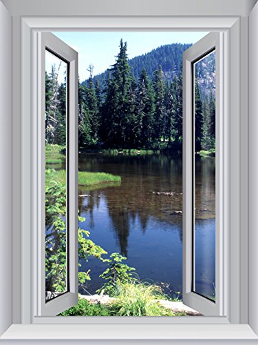 JP London Peel and Stick Removable Wall Decal Sticker Window Mural, Cottage Boreal Forest Escape Cabin Woods, 24 by 18-Inch