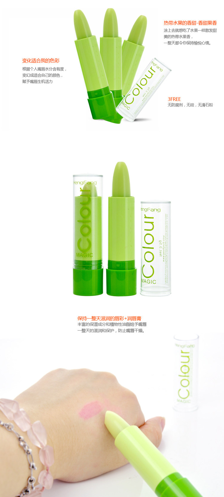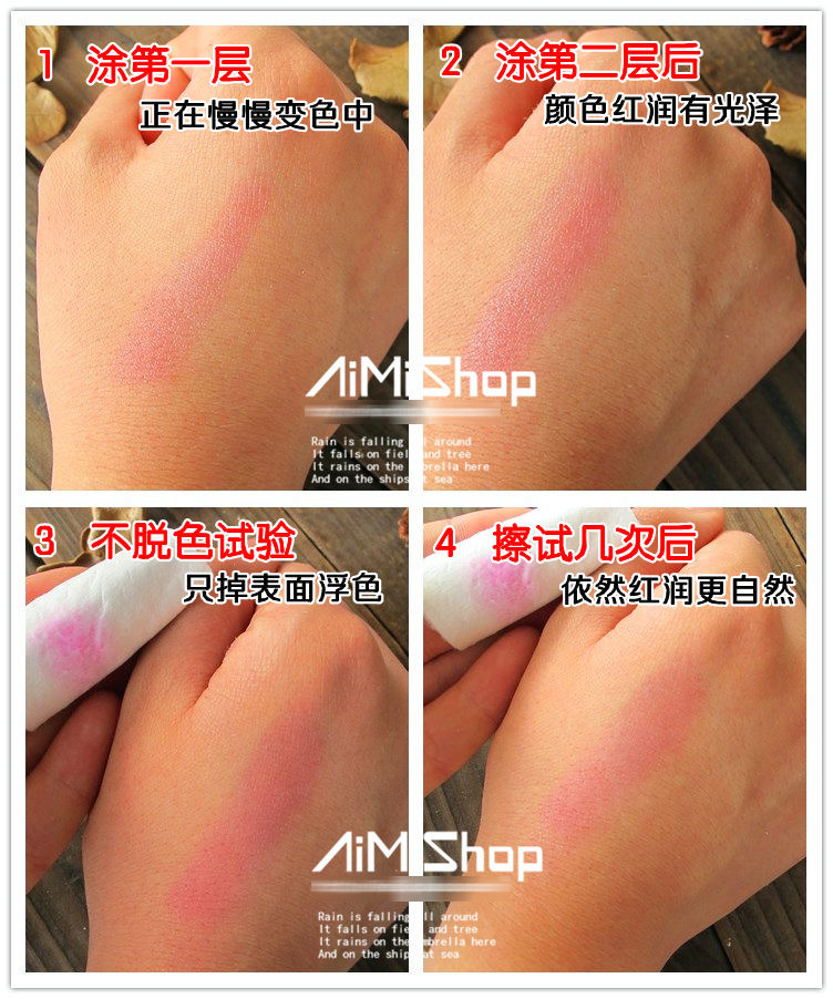 Brand Heng Fang The name burst fruity magic gradient color lipstick lasting moisturizingmoisturizing does not fade The origin of Chinese specification 3.5g Texture paste and shelf-life of 3 years The main efficacy improve complexion Treasurer recommended I have a special feeling for the first lipstick lipstick, in my life is a constantFang color lipstick. When Zong Zongxiao, the mother of cosmetics is very interested in, feel the mother pretty good makeup, especially lipstick on. So every time my parents took me out to play, I are clamoring to painted her mother's lipstick, mom cannot resist my trouble, put lipstick to me, this is theconstant Fang color lipstick. For the crowd All the beauty of the MM Product introduction the original packaging not plastic, lipstick shell is dark green, but lipstick for so many years has not changed. Just painted is not the color, it will slowly become red, bright and moist, not very exaggerated,but the skin will appear white. Tu end will fall a little floating color, then the persistence does not wear ~ Using the method can be applied directly. But not painted too much oh.Otherwise, the color will be very deep |