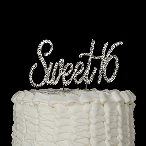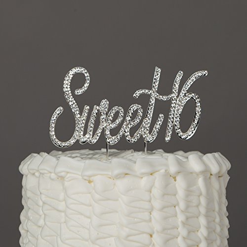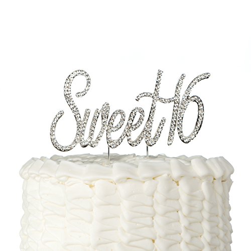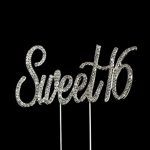Sweet 16 Cake Topper Crystal Rhinestone 16th Birthday Decoration Supplies ("Sweet 16" Silver)