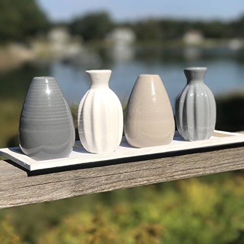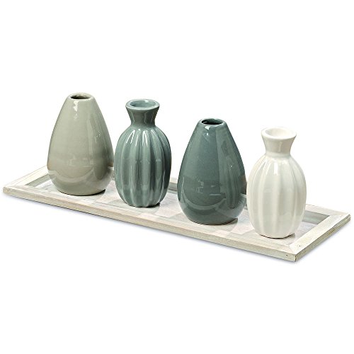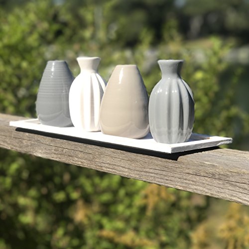 Studio : Whole House Worlds Publisher : Whole House Worlds Binding : Kitchen Product Description RUGGED, ORGANIC CLEAN LINES set your style with this striking set of Naturally Modern Vases on a Rectangular Display Tray. Capturing essential hues, each hand glazed vase has a distinct shape and contour. Each is slightly unique and delightful variations in color are to be expected and celebrated due to their artisinal origin. BEAUTIFULLY PROPORTIONED Well sized, this piece is well sized with the overall dimensions as follows: 12½ L x 4¼ W x 4¼ H inches. BALANCED HARMONY this set includes 4 vases in perfectly balanced and coordinated designer colors and a natural white stained tray. DECORATE ANY ROOM fine and easy going, this set of vases and tray easily pairs with a variety of color pallets and design themes. AN IDEAL GIFT, it's perfect to celebrate holidays, birthdays, weddings and many more. So gorgeous, you'll want to keep it at home for yourself. Enjoy! By Whole House Worlds Welcome to the product line of Whole House Worlds. The New York based company offers high quality, stylish products for every room in the house, and beyond. From the kitchen, to the living room, to the bedroom, dining room, home office, closet and garden: Our criteria are comfort, quality, style and value. 0
