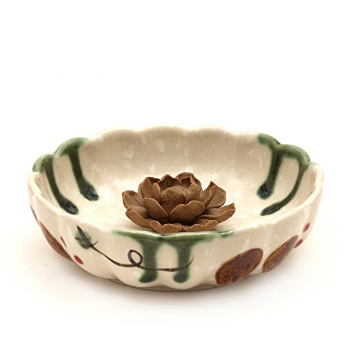 Medoosky Tang Dynasty Style 4.9-Inch Handmade Ceramic Lotus Incense Holder and Burner, Gray