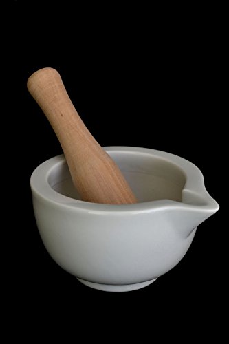 -. Feature : White Porcelain Mortar and Wooden Pestle / 10 Ounce Capacity / Gift Boxed / Approximate Dimensions: Pestle: 5.5" x 1.25", Mortar: 5" x 4" x 2.5"