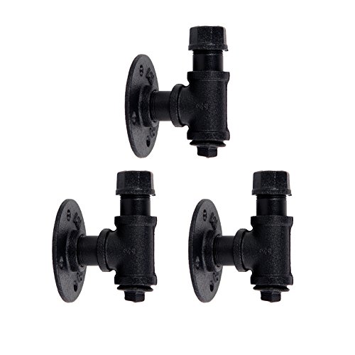 GoYonder Industrial Towel Hook Rack Iron Pipe Hanger (Mounting Hardware Included) (Black Finish - 3 Pack)