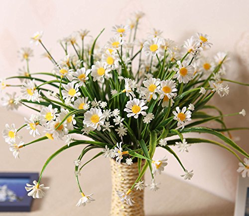 - ☀【The Ideal Home】:Faux daisy flowers outdoor in sparkling dense green foliage and bright white provides a natural,rest your mood and wonder.Generous and elegant, well made and vibrantly colored, looks real-like shy flowers. ★★★ {One square foot requires 3-4 Branches of faux daisy flowers ourdoor to fill }.