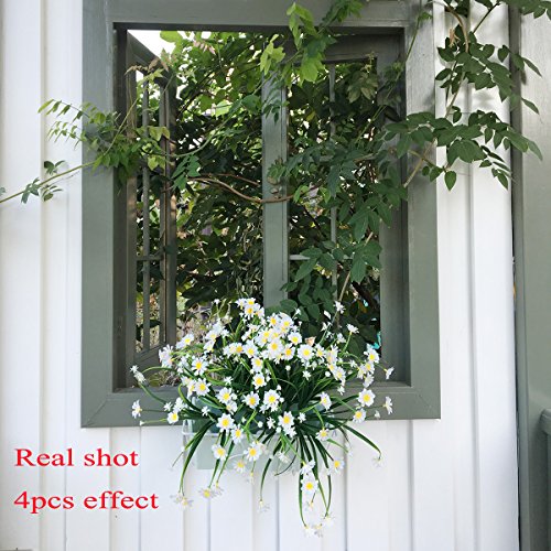 - ☀【Dimensions】:Faxu daisy flowers outodoor include ☞ 4 Bunches ☜ ,7 stems of fake daisy flowers,each bouquet has 7 flexible stems and bushy leaves,9.5" Wide x 12.99" length approx.