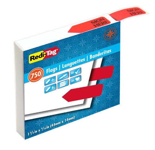 Redi-Tag Sign Here Economy Roll Printed Arrow - 750 Flags, 1-7/8 x 9/16 Inches, Red (81184)